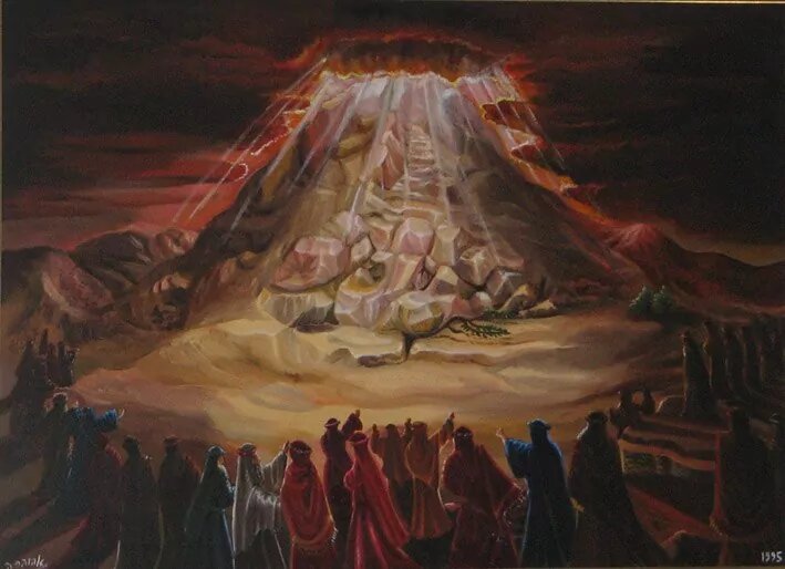 Пишет Рамбам (Законы об основах Торы, 8:1): «Сыны Израиля поверили Моше не из-за знамений, которые он сделал… а из-за чего поверили ему? У горы Синай, где мы видели своими глазами и слышали своими ушами огонь, голоса и факелы, и он входит в туман, и голос говорит ему, а мы слышим: Моше, Моше, иди и скажи им так и так».