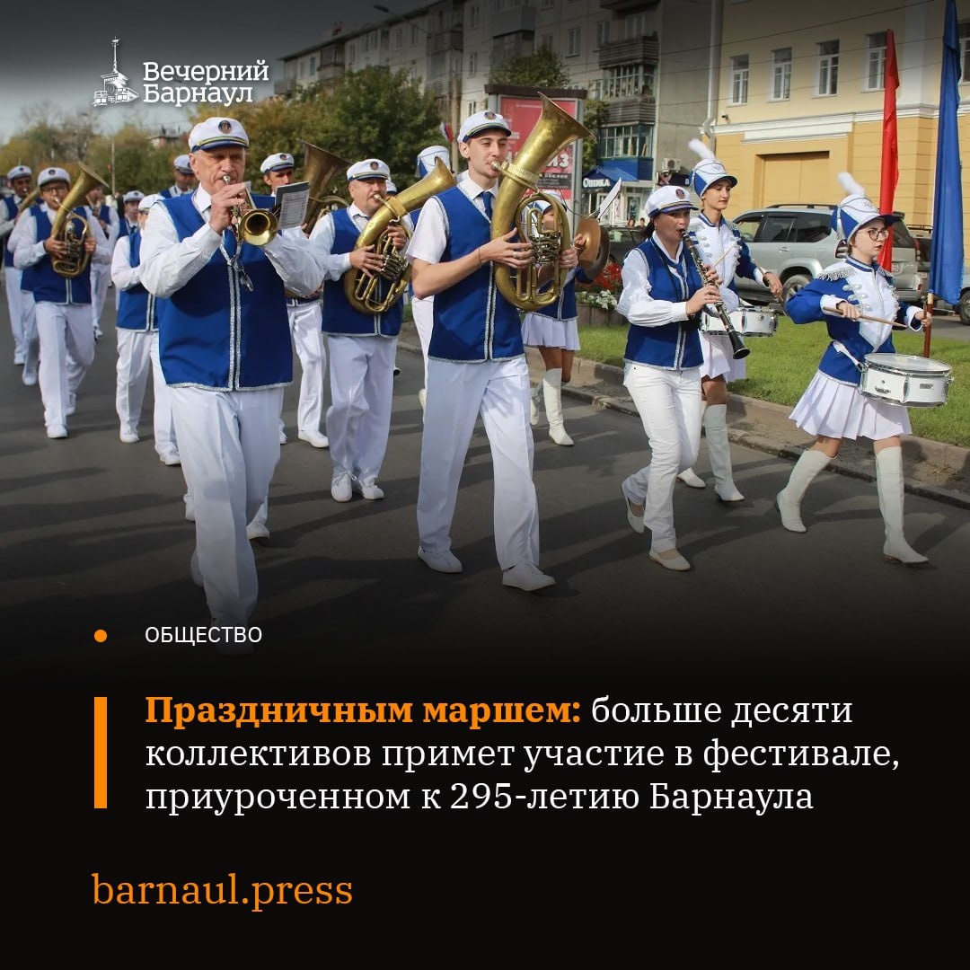 🎵 В конце августа в Барнауле состоится масштабное музыкальное событие — IV Открытый сибирский фестиваль духовых оркестров «Звуки праздничного марша». Этот проект приурочен к 295-летию города и пройдёт в дни его празднования. Фестиваль соберёт коллективы из Новосибирска, Новокузнецка, Кызыла, Абакана, Юрги, Барнаула, Рубцовска, ЗАТО Сибирский и села Усть-Калманка. Почётным гостем программы станет духовой оркестр Луганской государственной академии культуры и искусств им. М.Л. Матусовского. Подробнее о программе музыкального мероприятия читайте на нашем сайте. Фото: «Вечерний Барнаул» / Ярослав Махначёв. @barnaul_press