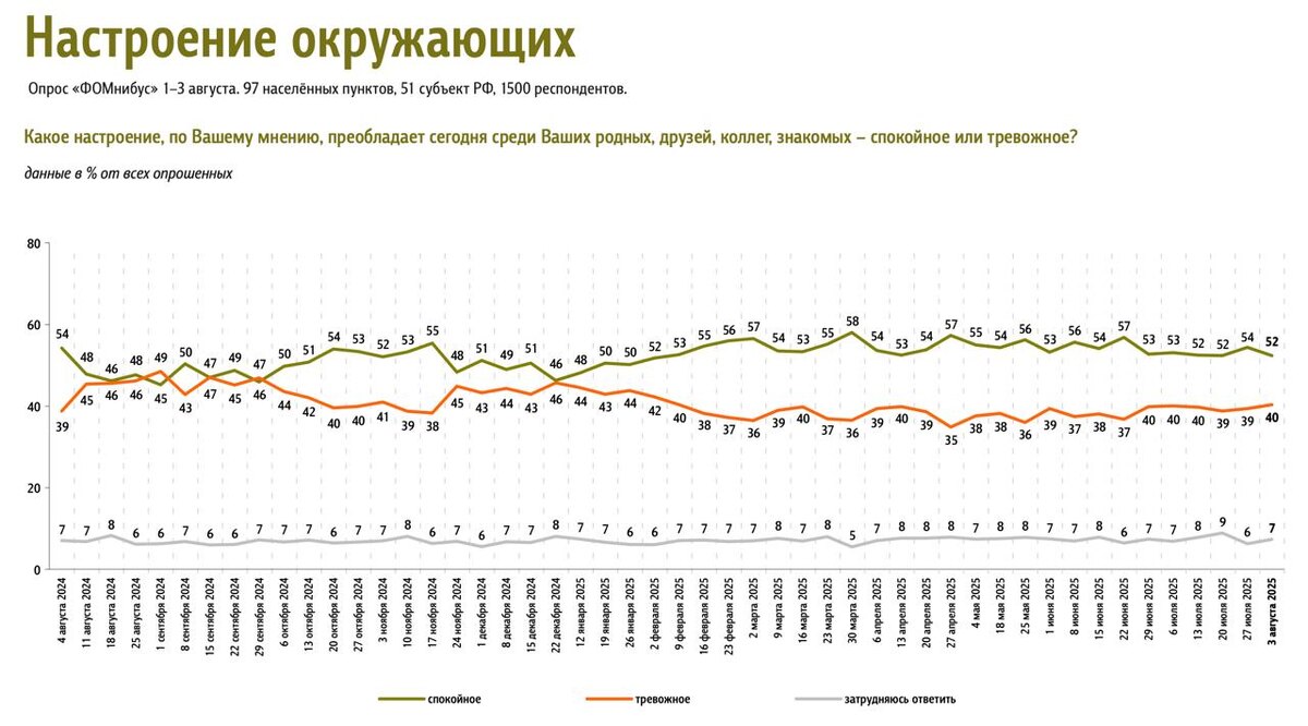 Результаты еженедельного опроса 1 – 3 августа 2025 года.
