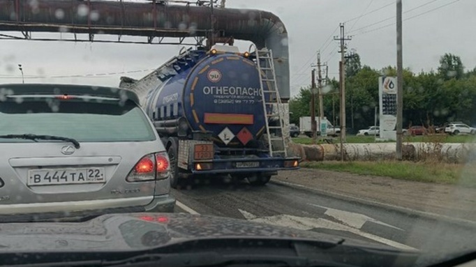 Бензовоз заблокировал шоссе Ленточный Бор в Барнауле и стал причиной огромных пробок