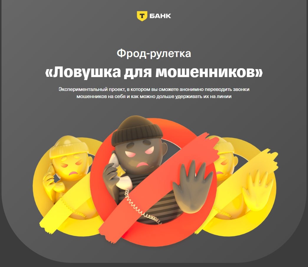 Фрод-рулетка: «разведи мошенника» Уже год в рунете действует интересный сервис от Т-Банка для любителей потроллить аферистов. ⚡️Называется он «фрод-рулетка» и работает так: 1️⃣ на номер жертвы звонят с заготовленным сценарием развода 2️⃣ сервис распознает и перенаправляет звонок на одного из тех, кто в нем зарегистрирован 3️⃣ мошенник все еще думает, что общается с жертвой 4️⃣ человек с сервиса как можно дольше держит афериста на линии и весело проводит время Так сервис выводит «из игры» одну единицу мошеннического колл-центра, не давая запустить схему развода. Вы точно знаете, что на связи мошенник и можете разыграть любой сценарий, чтобы он выложил вам всё про свою схему. ⚡️ Я за то, чтобы появлялось как можно больше таких сервисов, и чтобы 100% таких звонков переводилось на пользователей, которые знают, как разговаривать с подобными «товарищами». Может тогда этот «бизнес» исчезнет (или хотя бы его часть). Если согласны, кидайте реакцию🔥 и делитесь постом с близкими👍 🖼Але