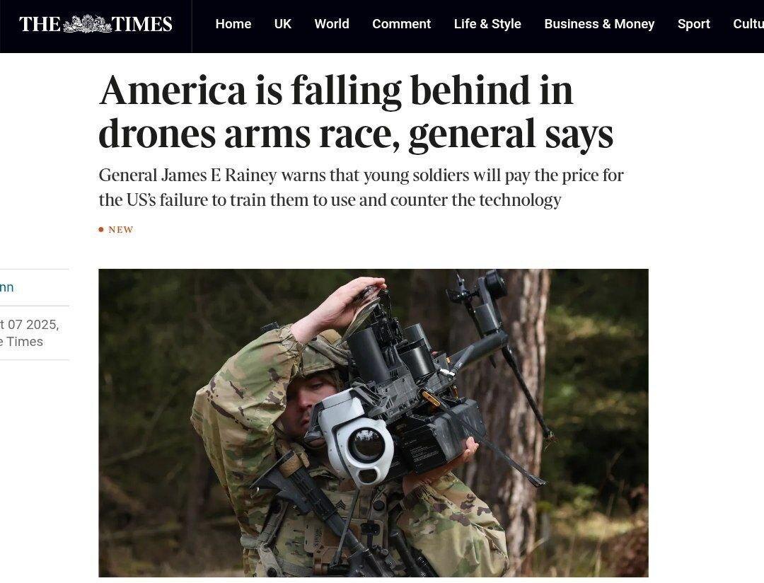Американский генерал признал отставание США от России в сфере беспилотных технологий. Глава Управления технической модернизации армии США генерал Джеймс Рейни в интервью The Times назвал Украину «наглядным испытательным полигоном» тактик беспилотников, опыт которого изучает Пентагон. Он прогнозирует, что будущее сухопутных сил — за автономными роботами и роями БПЛА под управлением ИИ, способными совместно уничтожать цели. При этом генерал отверг полную замену человека ИИ, подчеркнув, что «настоящий прорыв» произойдет лишь при создании эффективной комбинации «человек-машина». По словам Рейни, дроны должны взять на себя «весь смертельный риск», оставив людям задачи, недоступные машинам. Отставание в сфере БпЛА, заключил он, запустило новую гонку вооружений, масштаб которой сопоставим с космической или ядерной.