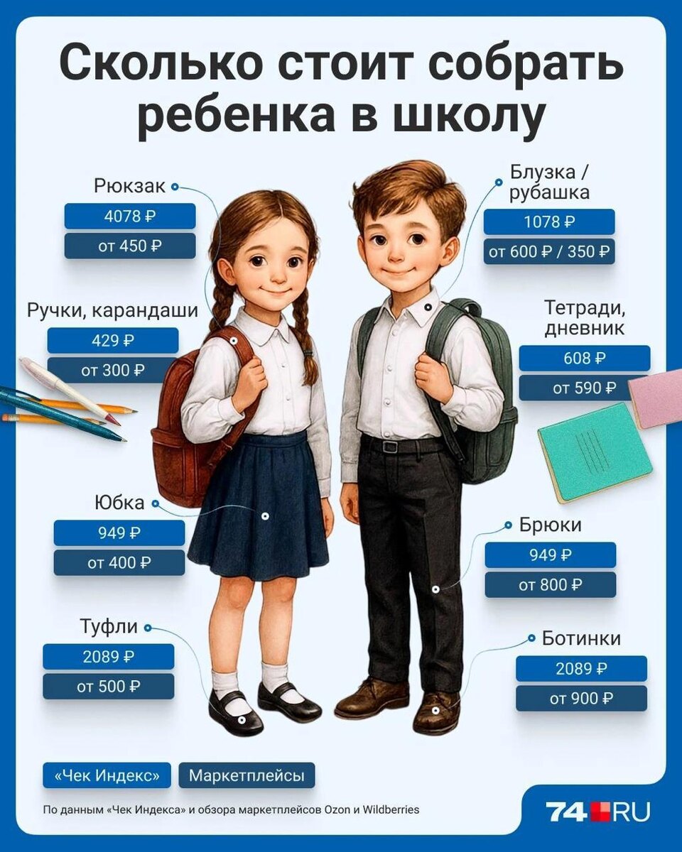 Официальная статистика: сколько тратит средняя семья. По данным «Чек Индекса», базовый набор школьника в 2025 году обходится в 11 191 рубль: