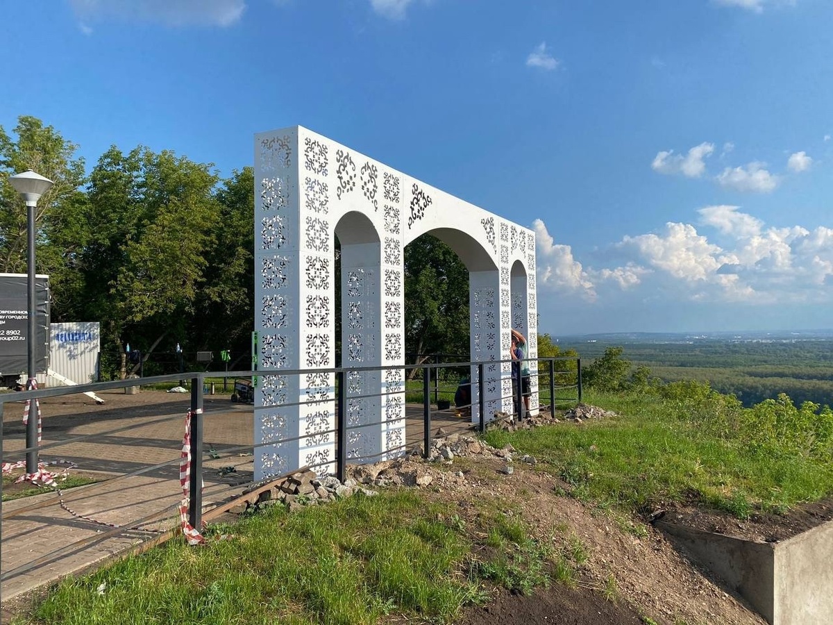 О благоустройстве территории около памятника истории и архитектуры сообщил в соцсетях глава администрации столицы Ратмир Мавлиев. «Продолжаем благоустраивать и наполнять смыслом территорию водонапорной башни. Начали установку арки», — отметил мэр города. Декоративная арка должна стать дополнительным элементом для красивых фотосессий, в том числе свадебных, уточнил Ратмир Мавлиев. Фото: Ратмир Мавлиев ВК.