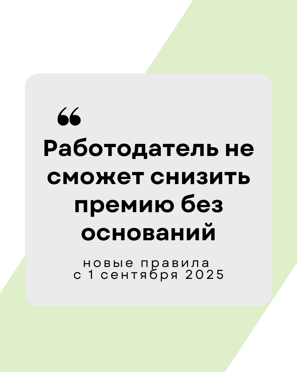 🧾 Снижение премии возможно только, если: ⚠️ Никаких устных договорённостей и "просто так решили" — больше быть не должно. ✅ Что делать, если премия урезана? 📌 Постановление вступает в силу с 1 сентября 2025 года и будет действовать до 2031 года. 💬 Делитесь с коллегами — пусть знают свои права!