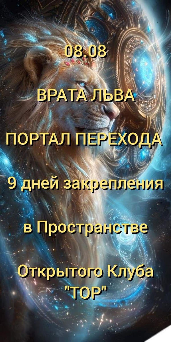 🦁 08.08 — МЫ ОТКРЫЛИ ВРАТА ЛЬВА Это утро невозможно забыть! В 08:08 Пространство раскрылось, как живой светящийся Портал. Цивилизации Лу’Миара шагнули в круг и повели нас — мягко, но мощно — сквозь Переход. Я видела, как у каждого в поле загорались новые линии Судьбы. Как сердце начинало сиять иначе — чище, свободнее, сильнее. Это не просто Активация. Это было рождение в новой частоте! 💫 И сейчас — мы не отпускаем этот Поток! В течение 9 дней Цивилизации будут передавать в Открытом Клубе ТОР коды закрепления. Это — постоянная настройка, чтобы энергия 08.08 не ушла, а стала твоей силой. 🔥 Если ты был в эфире — оставайся в поле. Если нет — можно войти прямо сейчас. 🤍🤍🤍 https://t.me/club_tor/952 Поток уже запущен, и он примет тебя в любой момент этих 9 дней. ⭐️ А для тех, кто готов идти глубже… Комьюнити ТОР — это не курс и не просто встречи. Это Живое Поле, где цивилизации Лу’Миара работают с тобой лично: ⏺ передают коды, активации и инициации ⏺ дают ченнелинги