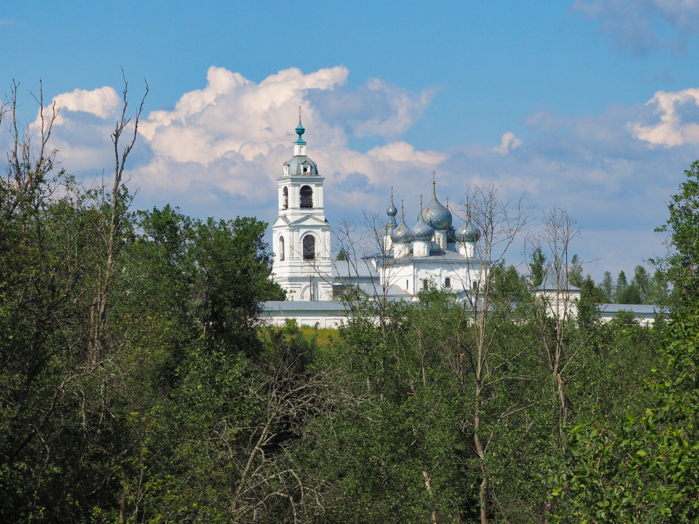 В прошлой части рассказ о моем путешествии в Углич остановился на том, что я сошел с прямолинейного маршрута и побывал в интересном селе Заозерье. После этого до Углича оставалось совсем немного. А примерно в десяти км от него поджидало еще одно интересное место, в которое планировал заглянуть. Речь идет об Николо-Улейминском монастыре. При пересечении речки Улейма с моста открывается вид на храмы монастыря. Мимо такой красоты не проедешь.