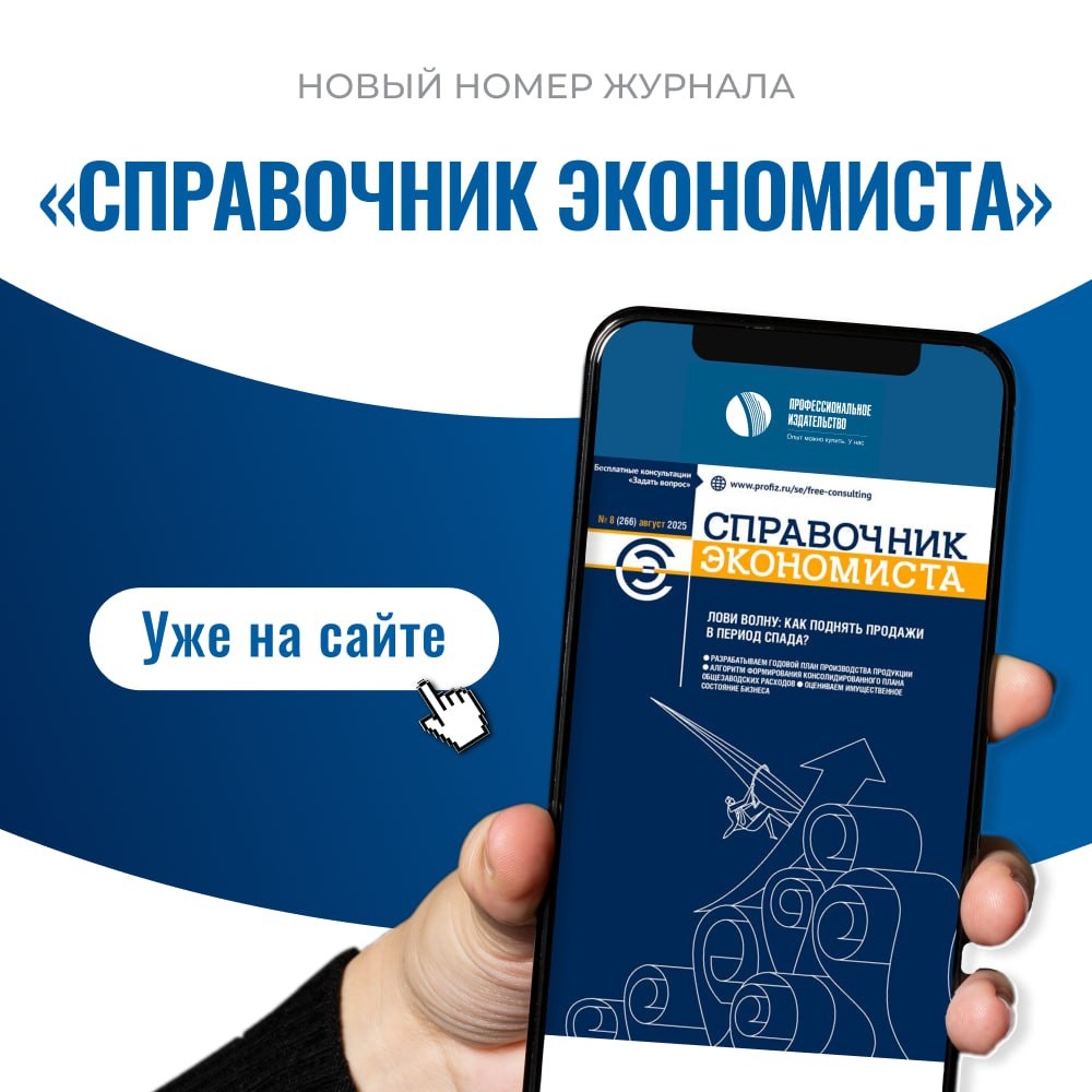 ✏️ Вышел августовский номер журнала «Справочник экономиста»! Читайте в новом номере: ✅Алгоритм формирования консолидированного плана общезаводских расходов ✅Разработка финансового плана: пошаговая инструкция ✅Разрабатываем годовой план производства продукции ✅Оцениваем имущественное состояние бизнеса ✅Как провести анализ основных производственных фондов компании? ✅Изменение цены договора строительного подряда: что следует учесть? ✅Лови волну: как поднять продажи в период спада? ✅Учетная политика компании: как определить состав прямых расходов? ✅Как проверить подлинность чека? ✅Финансовое планирование и внутренний аудит: как сохранить здоровье бизнеса? https://www.profiz.ru/se/