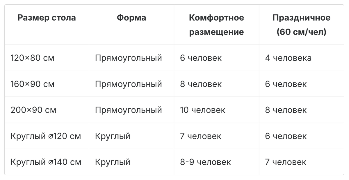 Выбирая кухонный стол, важно понимать, сколько человек сможет удобно за ним разместиться. Давайте разберёмся, как правильно рассчитать вместимость столов разной формы.