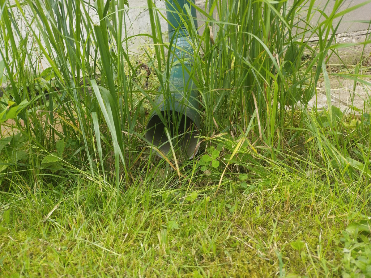 Удивительный мир. Зеленый мир. Если присмотреться. Остановить свой бег. То вот символ прошлого лета – труба. Зеленая труба. Поживает все так же отлично как и в прошлом году. А вокруг растет трава. Там, где вода. Там и трава. И тут вдоль белой кирпичной стены свой мир. Такой мир, выстроенный вдоль белой стены. И около трубы. Из воды с крыши стекает много воды после дождя. И это помогает. Помогает зеленым растениям расти! Трава, вообще, штука универсальная. Любит воду. И может расти в воде. Или, даже, в засуху. Но, вот эта зеленая трава вокруг трубы растет. Если двигаться вдоль стены. То время от времени, там растут небольшие зеленые кустики. Такие красивые и зеленые кустики. Приятно на них смотреть. Люблю зеленый цвет. И тут свой такой уникальный мир вдоль прямой линии. Там, где ближе к воде - побольше травы. Там, где подальше от воды - поменьше кустиков растет. Вдоль такой прямой линии словно своя вселенная. Такая обособленная от основной части сада. Своя вселенная. Такая прямая как л