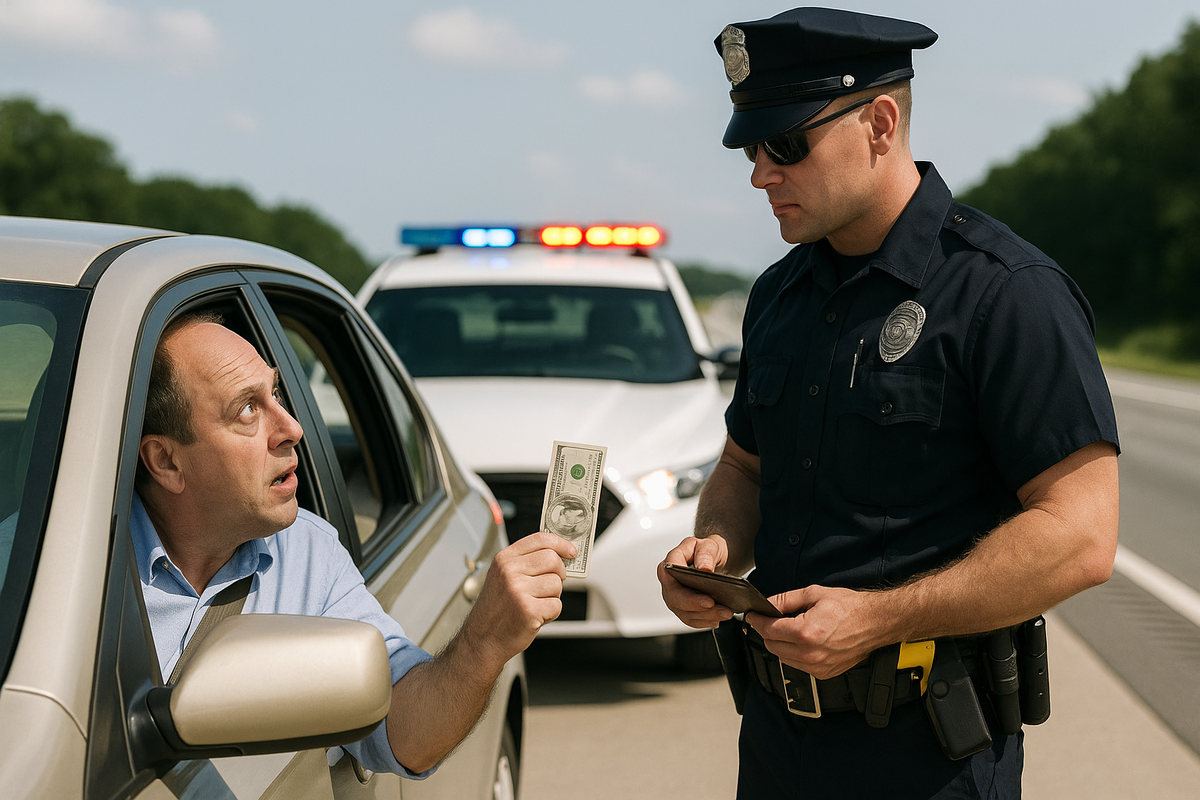 — Sir, — лицо копа потемнело, — if you’re offering me a bribe, I’ll put you in cuffs right now.