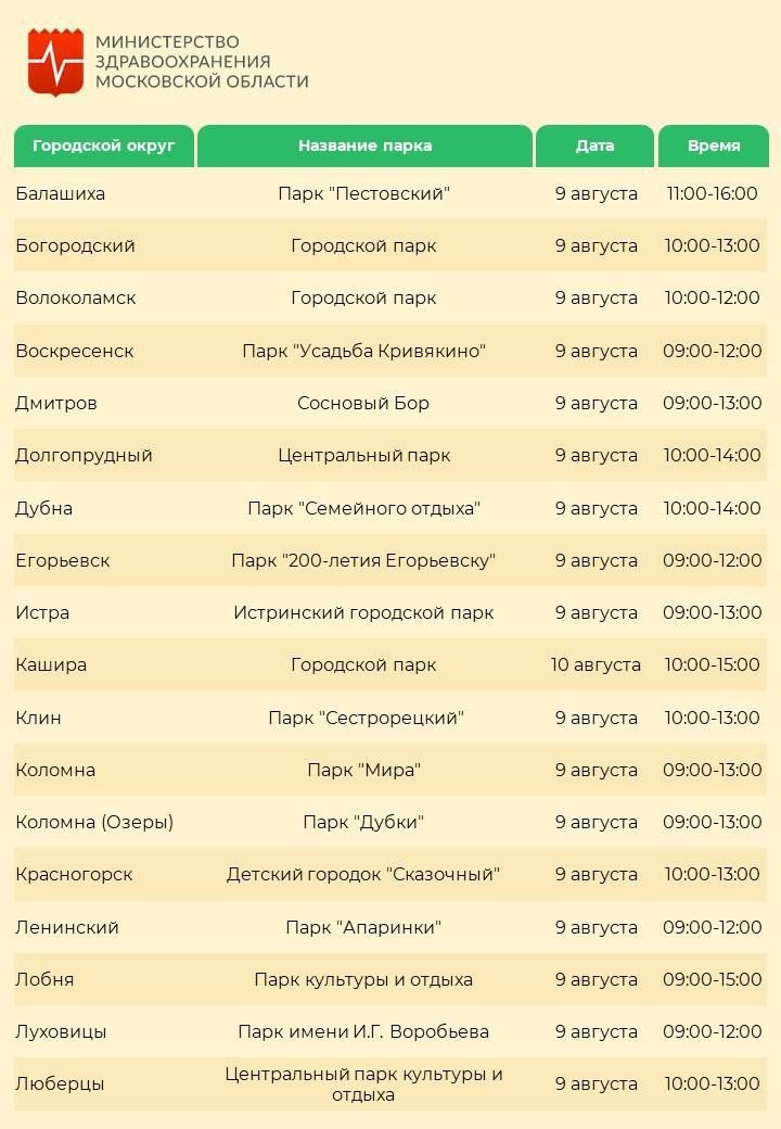 В выходные можно будет проверить свое здоровье в парках Подмосковья. С собой полис ОМС и паспорт!