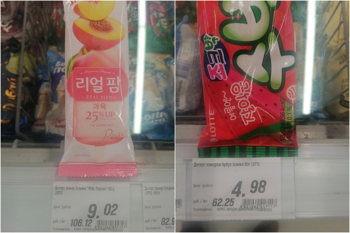 Наш журналист проверил: такое мороженое действительно можно найти в магазинах. Но ценник распечатали с ошибкой, Lotte — южнокорейская корпорация, никакого отношения к КНДР она не имеет. На самой упаковке также есть информация, что мороженое произвели в Республике Корея.