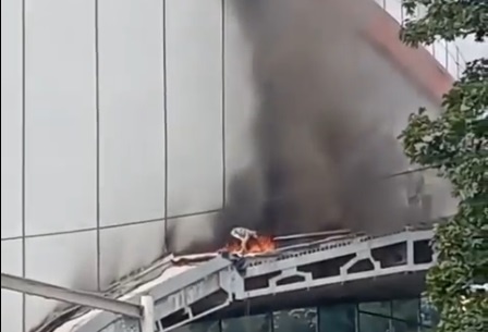 Один в огне и без страховки: героическое тушение цирка в Воронеже сняли на видео