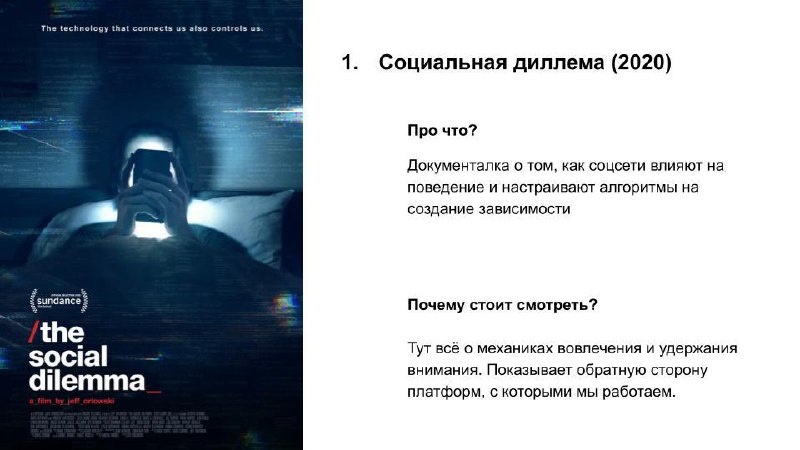 7 лучших фильмов для специалиста по рекламе (часть 4) И снова пятница. И снова в нас разгорается непреодолимое желание отдыхать у голубого экрана. ➡️ А чтобы вам было что посмотреть мы снова всю неделю опрашивали нашу команду, чтобы составить для вас увлекательную подборку. Внимание — смотреть кино разрешается только под вкусную еду и в хорошей компании. 🤪 Любимый кот хорошей компанией тоже считается. А если не нашли для себя интересную картину в этом посте, изучите предыдущие подборки: ✔️ Подборка №1 ✔️ Подборка №2 ✔️ Подборка №3 Смитовый киноклуб вернётся к вам через пару недель, как только мы найдём больше интересных картин... 💬 А пока обязательно советуйте свои любимые фильмы в комментариях! ➡️ Связаться 💛 Лучшие посты канала 🌐 Наш сайт 🔹Подписаться