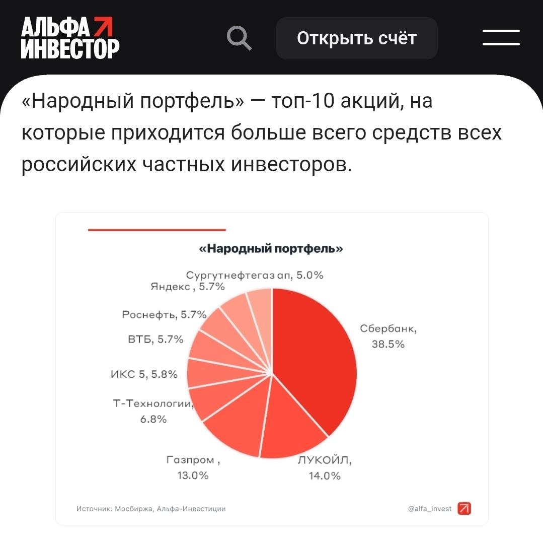 Альфа публикует народный портфель 💼 Мосбиржи и портфель клиентов Альфа Инвестиции