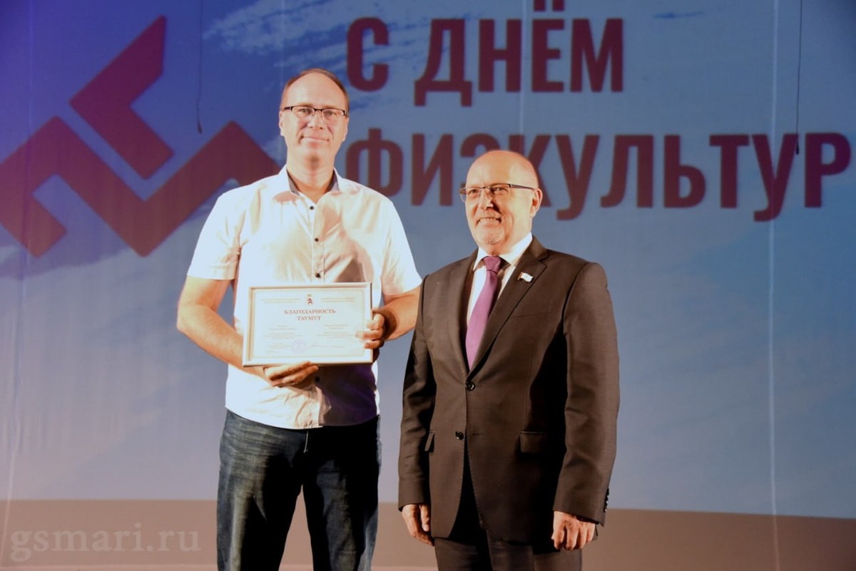 Председатель Госсобрания Марий Эл вручил награды за многолетний добросовестный труд в области физкультуры и спорта Сегодня, 8 августа, в Йошкар-Оле прошло торжественное мероприятие, посвященное Дню физкультурника. Михаил Васютин вручил награды директору Спортшколы олимпийского резерва по легкой атлетике Алексею Гребневу, начальнику отдела правового обеспечения, госслужбы и кадров Минспорта Юлии Ефимовой и председателю Федерации всестилевого каратэ России по Марий Эл Сергею Занькову. Глава парламента подчеркнул, что День физкультурника объединяет как людей, профессионально занимающихся спортом, так и любителей – верных приверженцев здорового образа жизни, количество которых с каждым годом увеличивается.