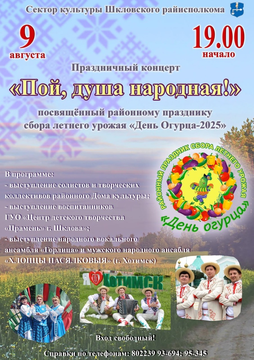 🎤🎼"Пой, душа народная!" В рамках Дня огурца в Шклове состоится праздничный концерт