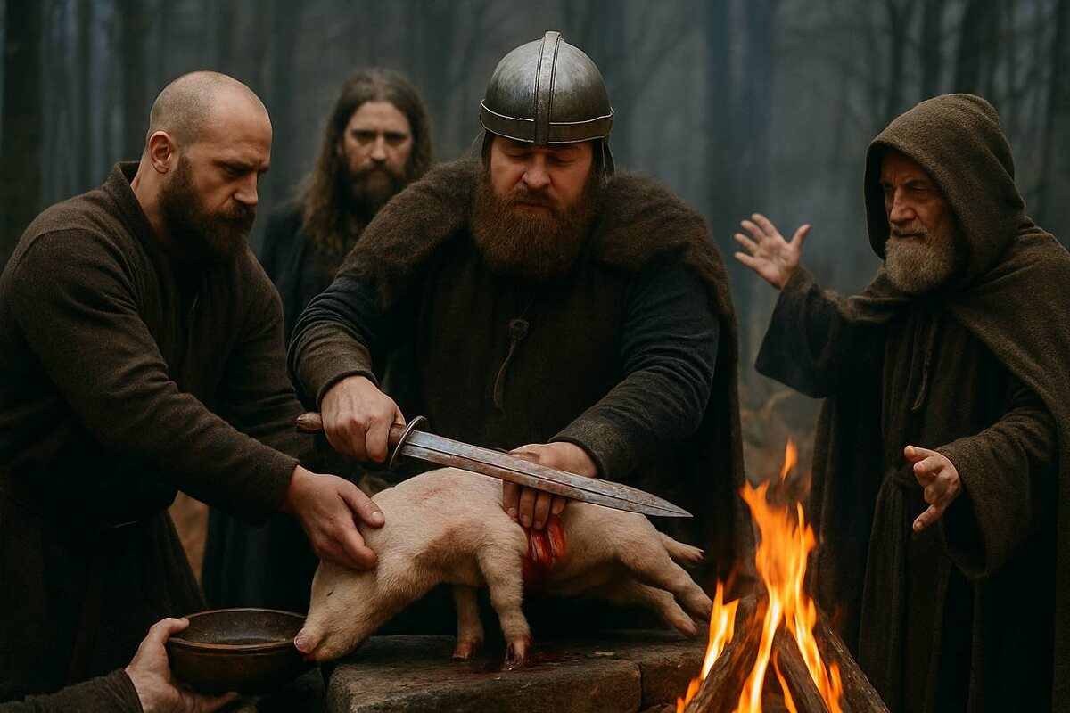 🛡 Боевые ритуалы викингов перед сражением ⚔️ Перед походами и битвами викинги не просто точили мечи — они готовили душу и тело к бою. Эти ритуалы были смесью веры, магии и психологии, превращая воинов в нечто большее, чем просто людей с оружием. 🔥 Обряды перед боем Воинов окуривали дымом из священных трав 🌿, в том числе полыни и можжевельника — считалось, что это очищает дух и отгоняет страх. Часто жрецы произносили заклинания и просили у Одина победы. 🩸 Кровавые жертвы Для привлечения удачи приносили в жертву животных — кабанов или коней. Их кровь лилась на оружие и доспехи, «наделяя» их силой богов. Иногда жертвой становился даже пленник… 🐻 Берсерки и транс Отдельные воины — берсерки — входили в боевое безумие. Перед сражением они могли биться в истерике, рычать, кусать щиты — это был их способ «войти в состояние зверя» 🐺. ⚔️ Эти ритуалы превращали обычное сражение в сакральный акт. Викинги шли в бой не просто за золото — они верили, что каждый удар может привести их к Валь