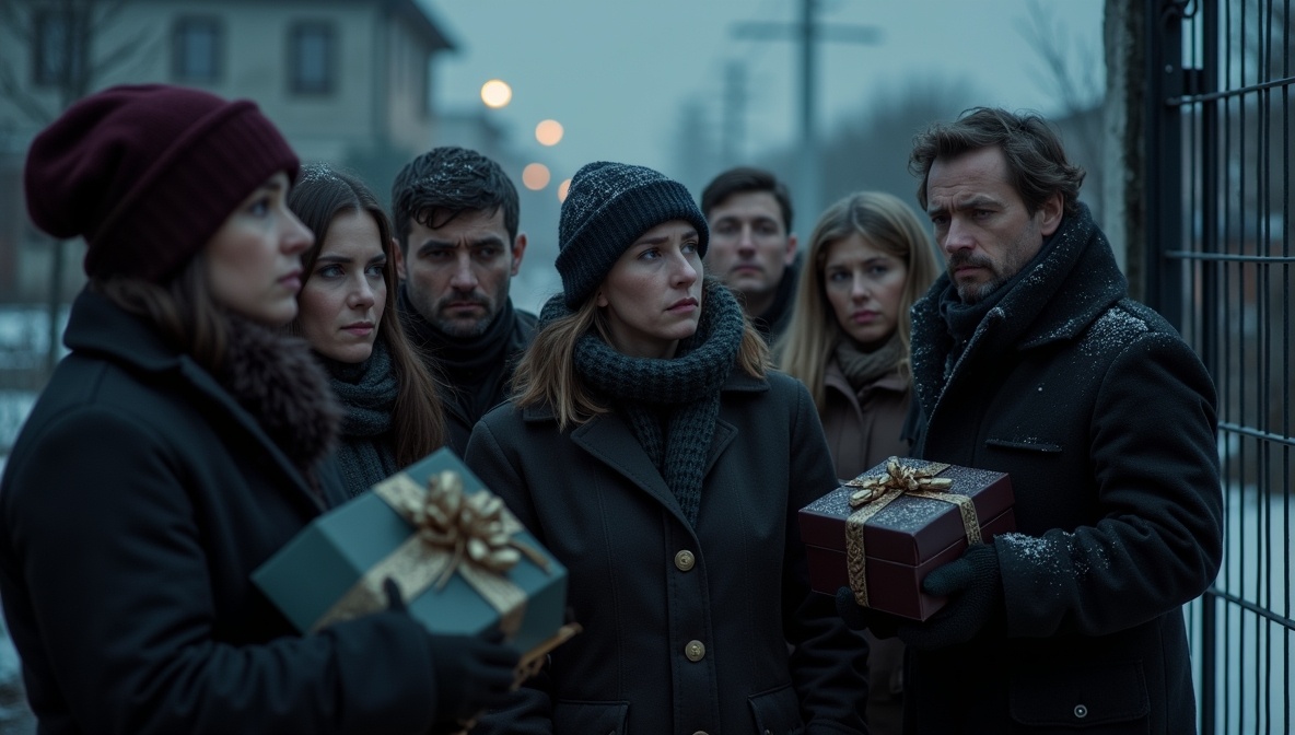 Стоим, мёрзнем. Людмила уже синюю стала — платье-то лёгкое. А тут подходят ещё двое гостей — Никита с женой. Тоже подарки несут, тоже не знают, как попасть.