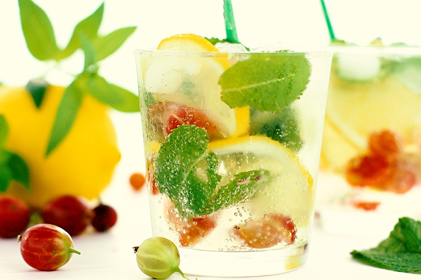 Содержимое кувшина залейте минеральной газированной водой. Коктейль можно подсластить медом или сахаром, вкуснее будет с коричневым. Мохито с крыжовником готов.