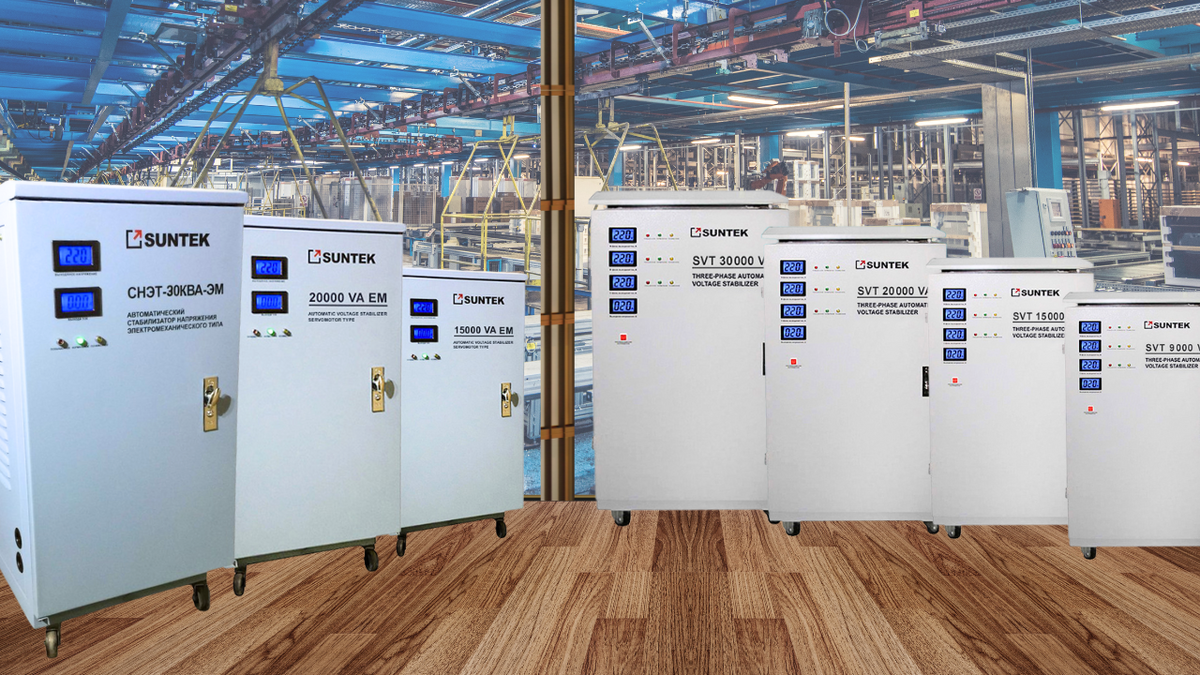 Стабилизаторы SUNTEK на 15–30 кВА (однофазные) и 9–30 кВА (трёхфазные) — это решение, рассчитанное именно на промышленные, сложные и тяжёлые условия. Надёжные, плавные, точные — как хорошие шестерни.