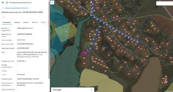 Название: Земельный участок площадью 5000 кв.м., кадастровый номер 23:39:0503004:1002, категория земель – земли населенных пунктов