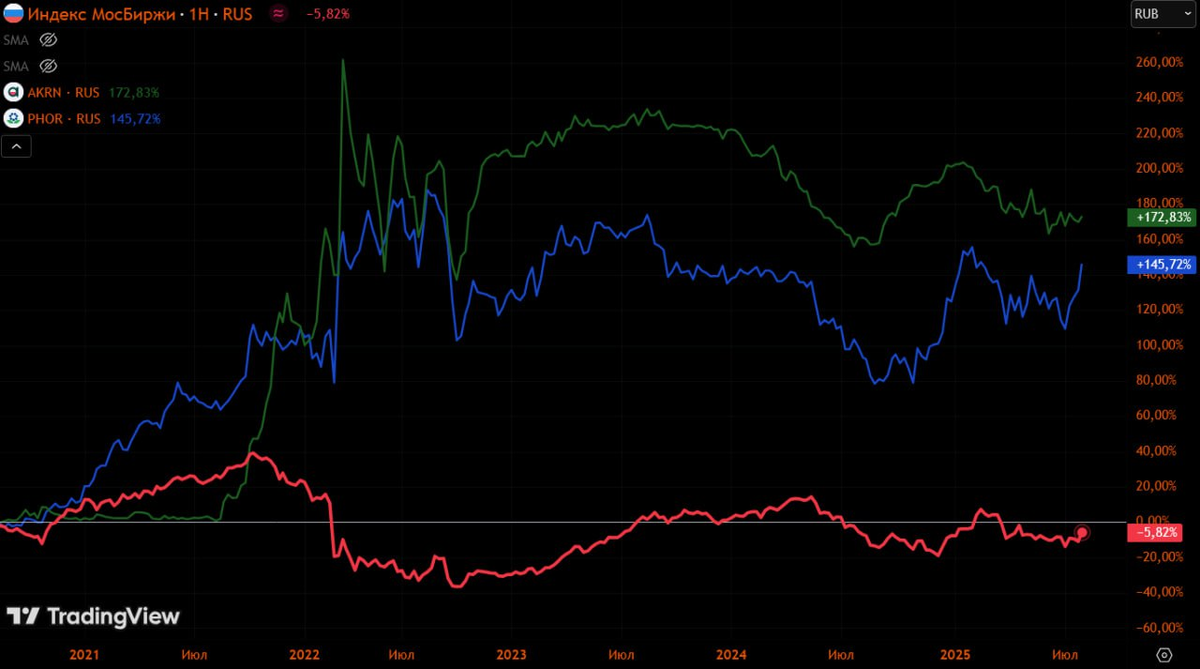 Вчера две крупнейшие публичные компании в отрасли химии дали свои прогнозы производства до 2030 года. Акрон рассчитывает увеличить выпуск продукции к 2029 году на 31% к уровню 2024 года - до 11 млн тонн. Инвестиции составят $2 млрд, из которых $500 млн будут инвестированы в текущем году. На заседании Совета директоров менеджментом была представлена стратегия развития ФосАгро до 2030 года, которая предусматривает рост производства на 16% от уровня 2024 года – до 13,7 млн тонн в год к 2030 году. Посмотрим как эти прогнозы работают: Предыдущая стратегия развития Акрона 2017-2025 гг. ставила целью рост на 40%, до 10+ млн тонн продукции. В 2017 году выпуск составил 7,3, а по итогам 2024 года 8,4 млн тонн. Рост составил 15%, что далеко от заявленных 40%. Вместо прогнозного роста около 5% в год инвесторы получили 2%. Сейчас компания хочет расти в среднем на 6,2% в год. Поверим, учитывая что предыдущий гайденс не был выполнен? Фосагро с 2013 года фактически построила еще один Фосагро! Рос