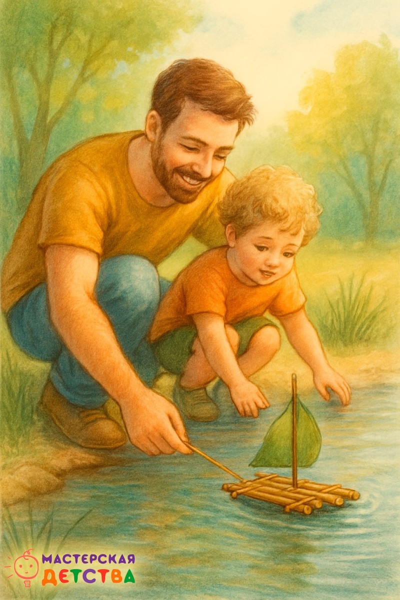 Иногда для счастья нужно совсем немного — немного верёвки, палочек и папиного времени. ✏️ С вами наша еженедельная рубрика «Папин выходной»! Предлагаем идею для простого, но запоминающегося выходного: построить вместе с ребёнком маленький плот и отпустить его в плавание. 🌞 Что это даст: – время, проведенное на свежем воздухе (а если вам удастся дойти до ближайшего парка с прудом — уже удача!) – совместное дело, где папа — капитан, а ребёнок — помощник – много разговоров, наблюдений и, конечно, запоминающихся моментов 🍂 Можно использовать: – ветки и палочки – дощечки – пробки – льдинки из формочек (для короткого плавания) – листочки вместо паруса 🚀 А если добавить бумажный флаг с инициалами — получится настоящий семейный бриг! Пусть в этот день не будет спешки, только ветер, вода и ваше «вперёд, капитан!» #МастерскаяДетства #ВыходеныеСПапой