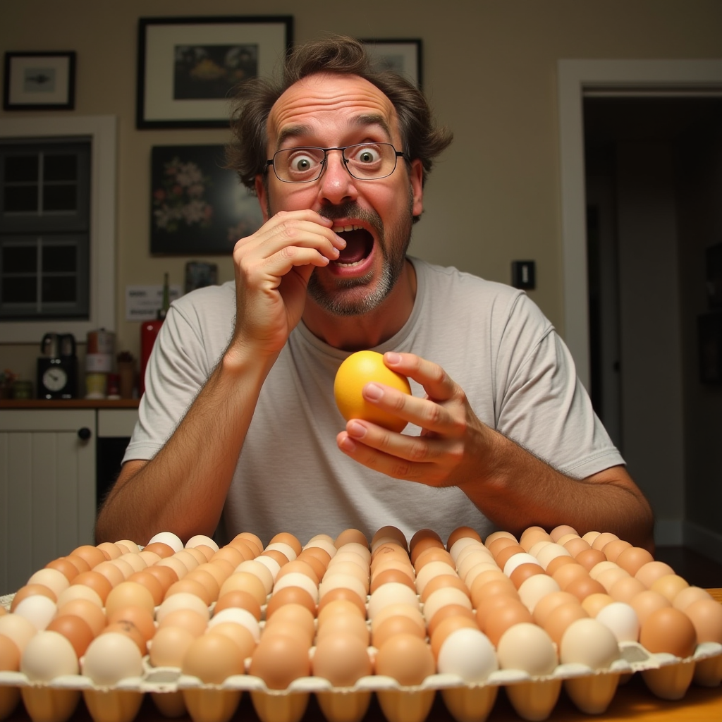 — Это опасно. Но Ник Норриц решил проверить всё сам. В течение 30 дней подряд он ел по 24 яйца в день — всего 720 яиц.