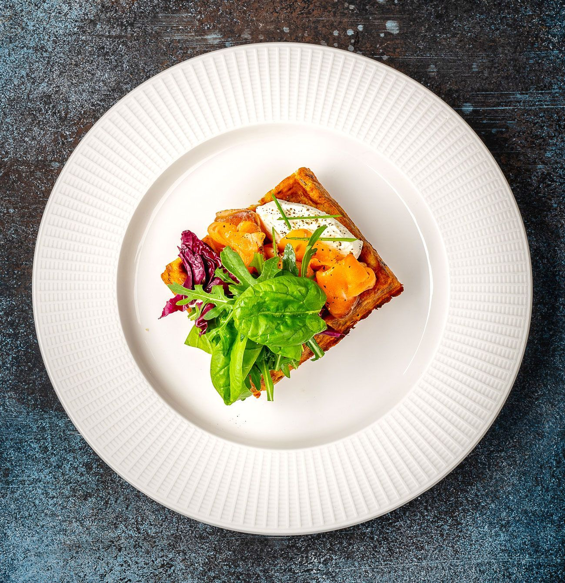 Картофельные вафли - отличный завтрак и достаточно простой способ приятно удивить любимого человека или друга/подругу. Они сочетаются с целой кучей всего, но лучшее сочетание, на мой взгляд, как рас с лососем. Для вафель: Для подачи: 1. Запекаем картофель в кожуре (предварительно завернув в фольгу) в течении 45 минут (можно сделать это заранее), остужаем и очищаем картофель от кожуры и разминаем через сито. 2. Разогреваем вафельницу для венских вафель до 180 градусов. 3. В миске смешиваем картофель и все оставшиеся ингредиенты до однородной консистенции, даем постоять 3-5 минут. 4. Выпекаем вафли до золотистой корочки в течении 7 минут. 5. Выкладываем слегка остывшую вафлю на тарелку, сверху выкладываем крем-сыр, на него лосось, после - зелень. 6. Опционально поверх зелени можно уложить яйцо-пашот и посыпать его мелко нарубленным зеленым луком. 1. Запеченный картофель отлично хранится в холодильнике несколько дней, так что можно заранее приготовить его и использовать по необходимост
