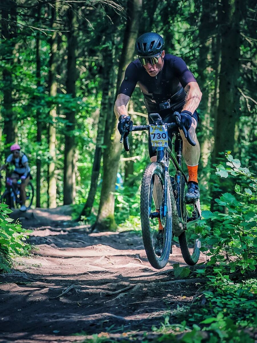 Колесный эксперимент на Истринском веломарафоне Почему-то все забыли что у гревела есть еще один размер колес которые можно ставить когда нужна высокая и широкая резина. Некоторые производители при покупке велосипеда даже дают выбрать какими колёсами укомплектовать велик. Поля и леса у нас зубодробительные поэтому в этот раз я решил провести эксперимент и поставил колеса размером 27.5x2.2 (это 650Bx55мм), сделал низкое давление 18psi(1.24атм) - ребята это кайф скажу я вам. Перекат по всем кочкам и корням был мягким и комфортным, руки вытрясало меньше. Буду почаще практиковать такое решение. Ставил на обычных камерах. А если поставить на TPU? Даст это -4 секунды?🤪🤷♂️ Прикол такого диаметра в меньшем маховике который надо раскручивать при постоянных торможениях, поэтому чем маховик легче тем еще легче набирать скорость после замедления. Резина Continental Cross King - она слишком зубастая для такой сухой и твердой трассы. На бетонных плитах наката не было от слова совершенно. Но за