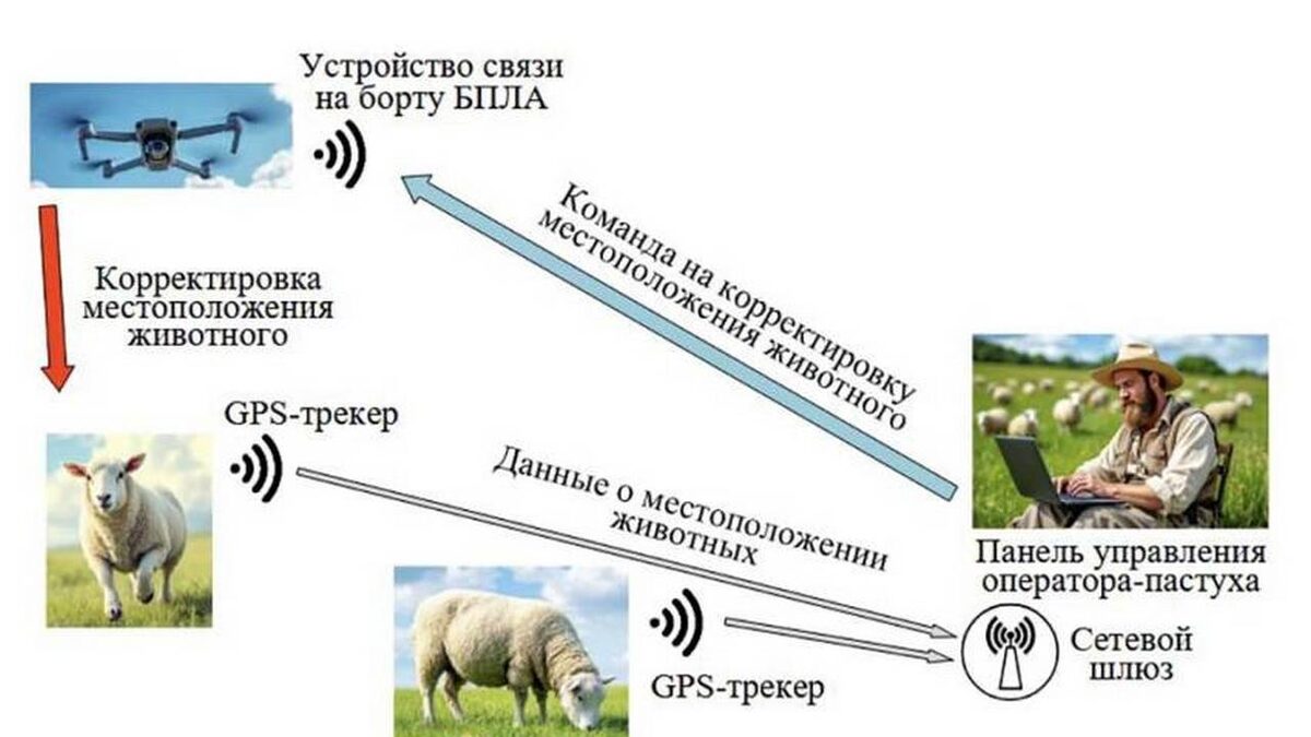 Беспилотники вместо пастухов: учёные БелГУ разработали умную систему выпаса скота Специалисты Белгородского госуниверситета создали программу для управления стадом с помощью дронов и GPS-трекеров. Новая система позволяет сократить энергозатраты и повысить безопасность животных на выпасе. На скот крепятся датчики с GPS-трекингом, передающие данные через LoRa-шлюзы. Оператор видит на карте расположение животных в реальном времени, а при их приближении к границе пастбища автоматически запускается дрон, который с помощью звуковых сигналов возвращает животное в безопасную зону. «Это намного экономичнее, чем использовать беспилотник, который находится в воздухе постоянно и следит за животными. В предложенной нами системе беспилотник большую часть времени находится в покое и вылетает только в нужную точку в нужное время», – рассказал профессор кафедры информационных и робототехнических систем НИУ «БелГУ» Константин Польщиков. Разработка уже запатентована как компьютерная программа. В персп