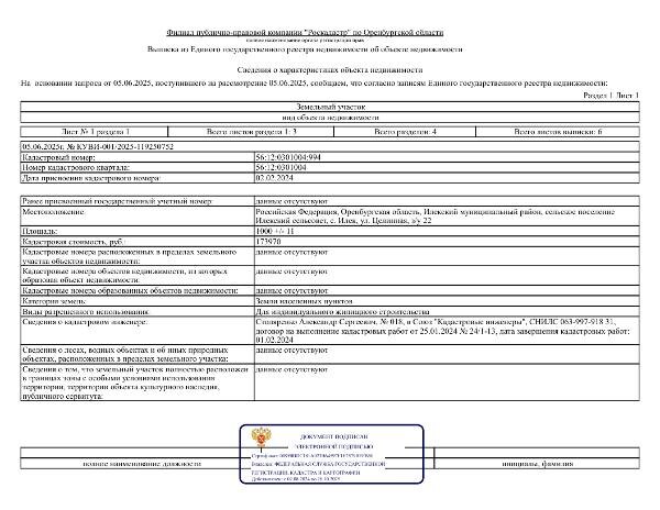 Название: Земельный участок, кадастровый номер: 56:12:0301004:994