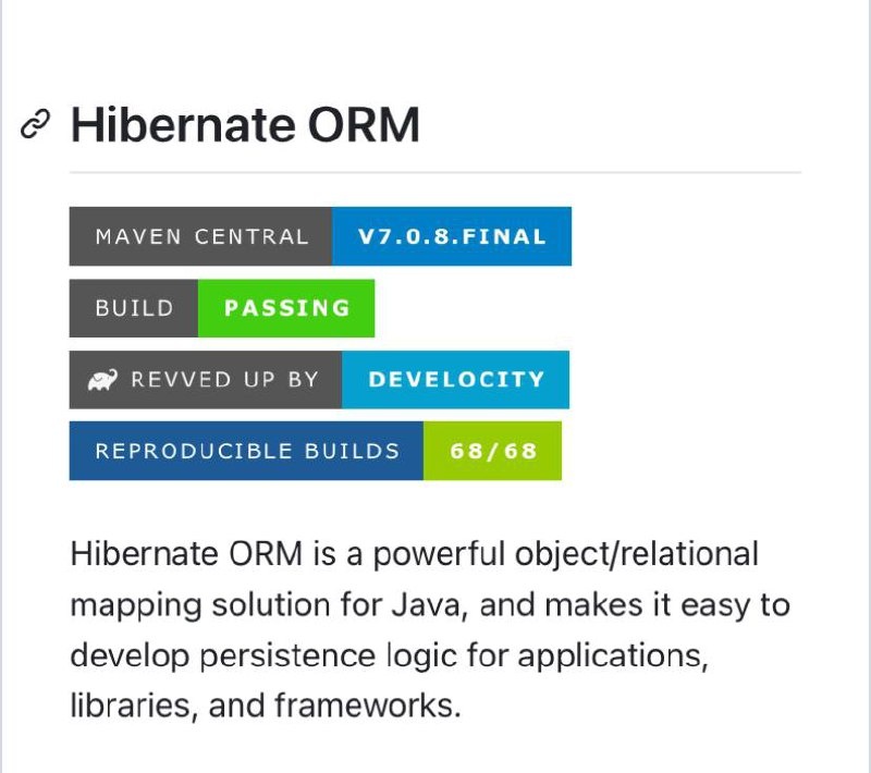 🐘 Hibernate ORM — зрелый ORM-фреймворк для Java, который остается стандартом де-факто для работы с реляционными БД. Хотя проект реализует JPA-спецификацию, он предлагает гораздо больше возможностей — от расширенного кэширования до поддержки экзотических СУБД вроде SAP HANA. Разработчики уделяют внимание тестированию: в комплекте идут Docker-скрипты для быстрого развертывания 15+ СУБД и гибкая система профилей. Сборка требует JDK 21, но сохраняет совместимость с Java 17. 🤖 GitHub @javarush