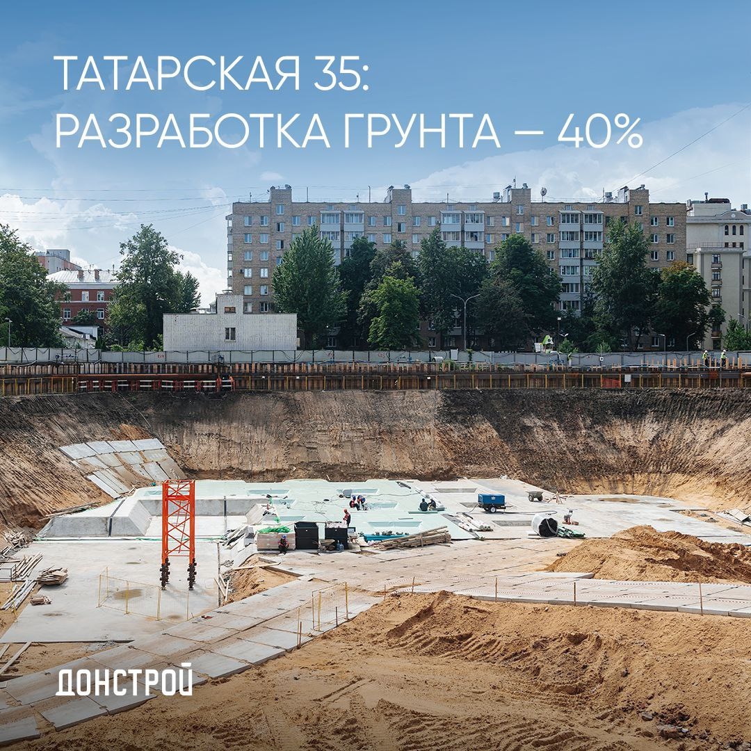 Ход строительства: жилой комплекс «Татарская 35» Девелопер «Донстрой» продолжает активные работы на строительной площадке своего нового проекта – жилого комплекса «Татарская 35»: в июле разработка грунта достигла 40%. Начались работы по устройству гидроизоляции — 10%. Также продолжаются работы по шпунтовому ограждению котлована, устройству распорной системы, устройству бетонной подготовки, устройству системы строительного водопонижения. На данный момент идёт монтаж поясов ограждения котлована, деревянной забирки ограждения котлована и раскосов ограждения котлована. Девелопер – «Донстрой» Архитектурная концепция – бюро «Apex» Адрес: улица Большая Татарская, вл. 35 (ЦАО) Via @Donstroymsk #ходстроительства