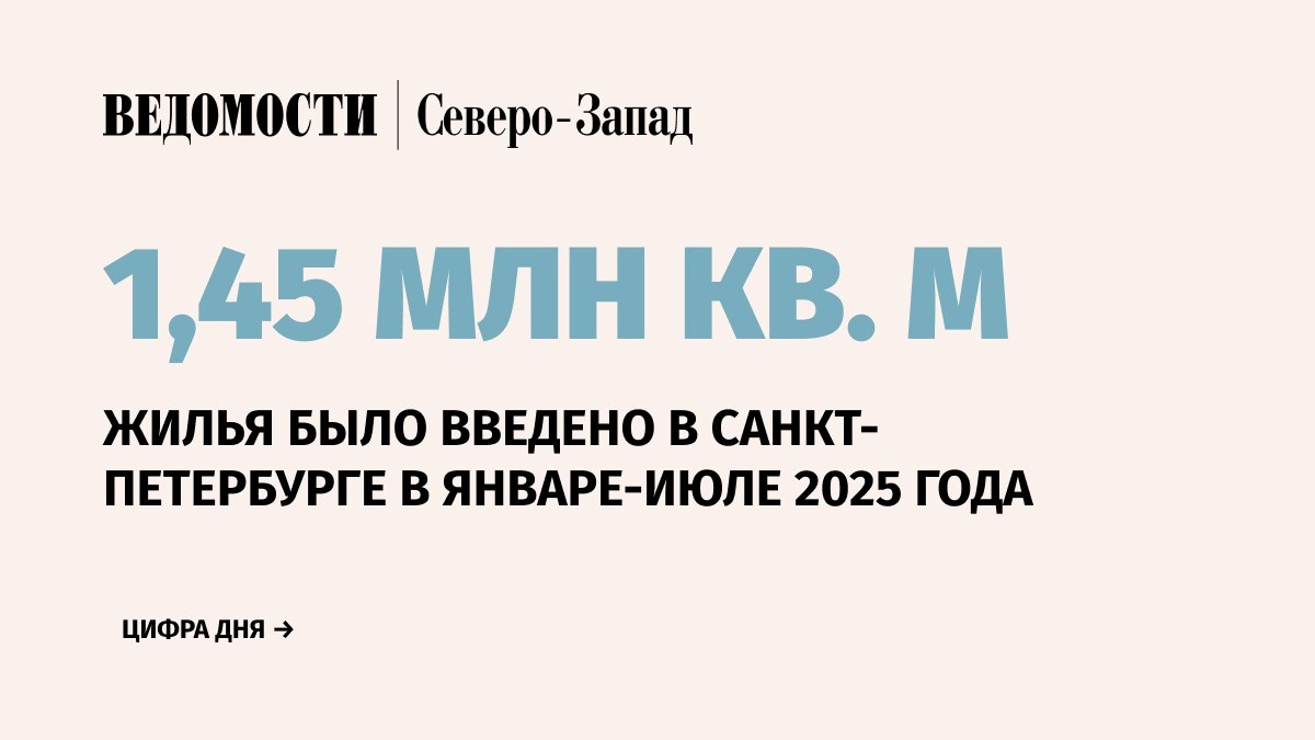 В Санкт-Петербурге в январе-июле 2025 г. ввели 1,452 млн кв. м нового жилья. Это на 10% меньше по сравнению с аналогичным периодом 2024 г., когда было введено 1,614 млн кв. м, следует из данных комитета по строительству города и Петростата. ➡️Напомним, в январе-июне отставание относительно аналогичного периода составляло также 10%. ⚪️В комитете по строительству города отметили, что в июле в Санкт-Петербурге ввели 86 домов, включая многоквартирные и индивидуальные жилые строения (ИЖС). Из них – девять многоквартирных домов (187 378,3 кв. м) и 77 домов ИЖС (более 13 000 кв. м). ⚪️Лидером по темпам строительства в прошедшем месяце стал Красносельский район, где за месяц было введено 77 000 кв. м. На втором месте – Калининский район с 36 000 кв. м, на третьем месте – Петродворцовый район с введенными 35 800 кв. м. 📰 Подпишитесь на «Ведомости Северо-Запад»