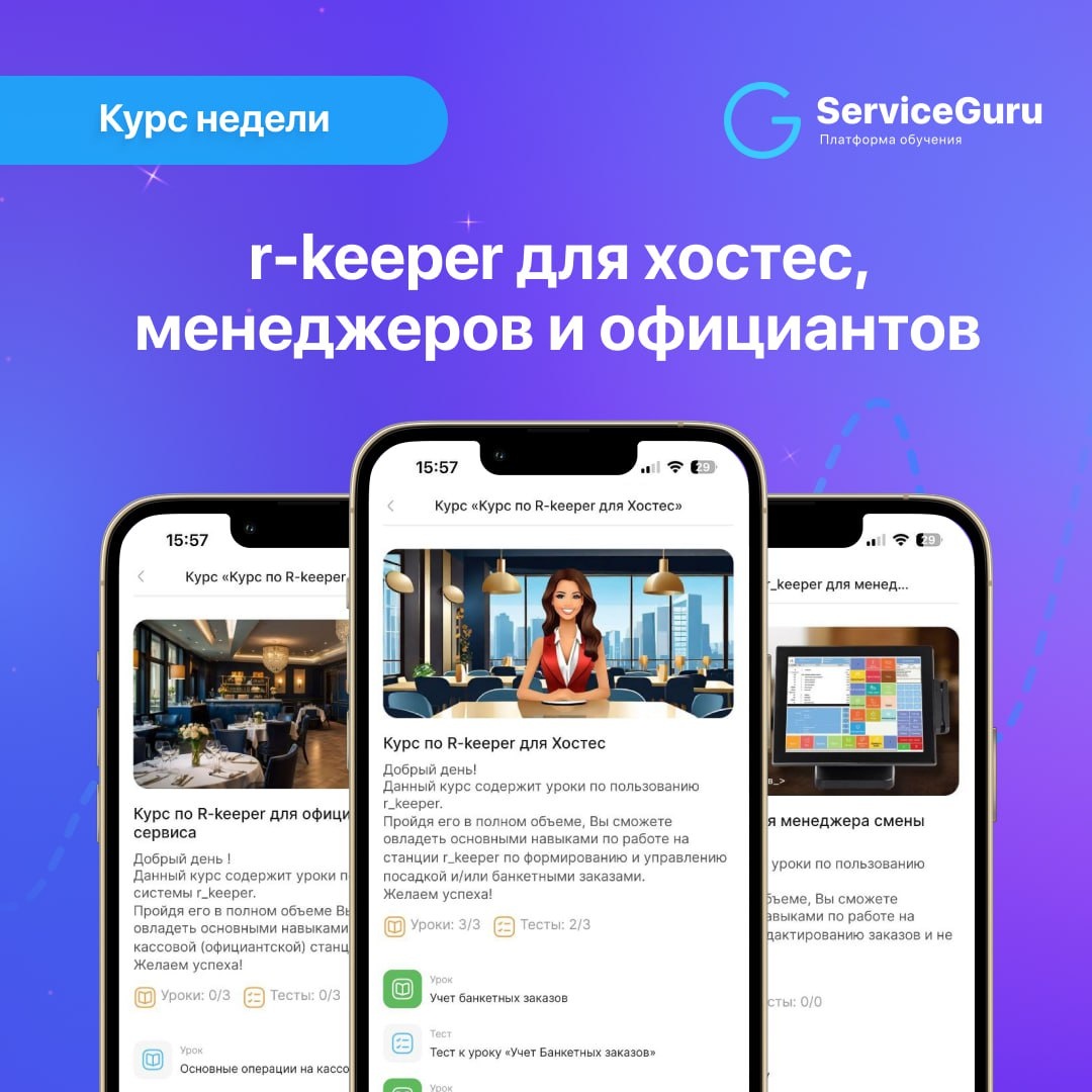 Бесплатные курсы по r-keeper для хостес, менеджеров и официантов 🖥 Курс недели: а точнее, целых три! Эти курсы помогут вашим сотрудникам освоить ключевые функции системы и техники работы с ней, что поможет значительно ускорить их ежедневную рутину! ✅ Основные навыки работы на станции r_keeper для хостес, официантов и менеджеров. ✅ Подробные инструкции по каждому этапу использования системы. ✅Эффективное использование r_keeper для повышения качества сервиса и скорости обслуживания. 💬Чтобы узнать подробности и получить курс, обращайтесь в наш Отдел заботы ➡️ Готовые курсы по сервису от экспертов для всех должностей: смотреть тут 📎Ещё не клиент ServiceGuru? Оставляйте заявку на тест-драйв платформы #курс_недели