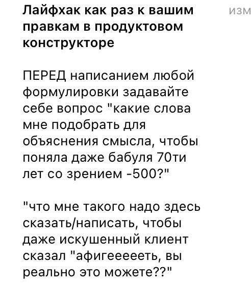 Лайфхак как начать продавать легко. Если у вас проблемы с написанием текстов, объяснения в чем вы хорош и почему надо купить этот лайфхак идеально вам зайдет. Я как раз им поделилась сегодня с моим учеником и решила скинуть вам скрин из нашего рабочего чата. Так что, считай заглянули к нам во внутрянку)