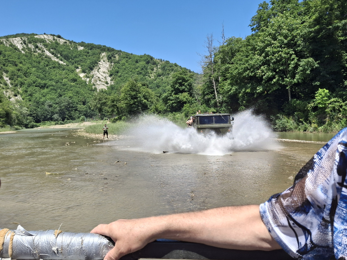 Свободное время. Можно поплавать в речке. Едем к водопаду. Приехали на место. Дальше пешком. Путь идет по речке. Камни скользкие. Обувь надо удобную. Водопад. Народу много. И в обратный путь. На ужин была уха в неограниченных количествах. И зажигательные танцы! Прощаемся и в обратный путь. Продолжение следует... Начало Архипо-Осиповка. Часть 1. Гостевой дом "Янтарь". Пляж Архипо-Осиповка. Часть 2-1. Дорога на пляж. Цены Архипо-Осиповка. Часть 2-2. Дорога на пляж. Цены Архипо-Осиповка. Часть 3. Парк "Малибу" Архипо-Осиповка. Часть 4-1. Музей космонавтики Архипо-Осиповка. Часть 4-2. Музей космонавтики Архипо-Осиповка. Часть 4-3. Музей космонавтики Архипо-Осиповка. Часть 5-1. Экскурсия "Лезгинка"