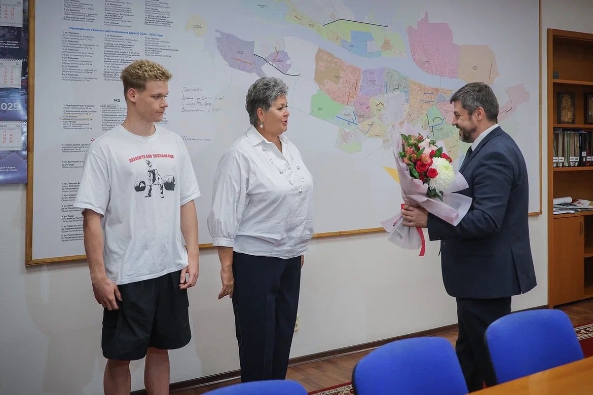 🐠Рыбинская рыбка! Пловец Александр Степанов и его наставница Анна Тулупова побывали у главы Рыбинска Дмитрия Рудакова, который вручил