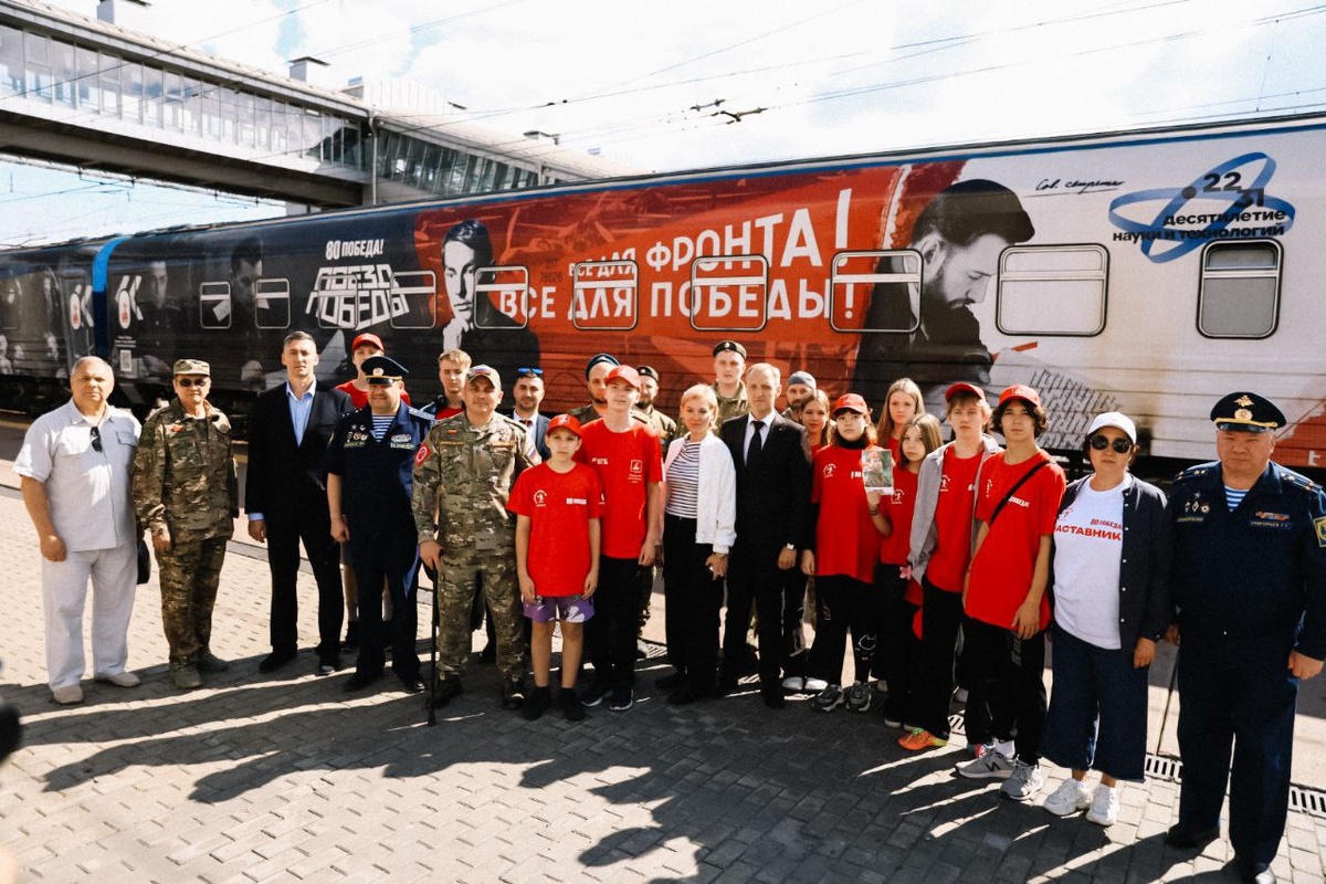 «Поезд Победы» прибыл в Тюмень Сегодня в областную столицу прибыл "Поезд Победы" — первая в мире передвижная выставка-музей. В его экспозиции запечатлены образы прошлого нашей страны. Это портрет великой эпохи в лицах, жестах, мгновениях, предметах и чувствах. Каждый из 10 вагонов посвящен отдельному событию Великой Отечественной войны и рассказывает о сражениях, трудностях и тяжелых испытаниях, которые прошел наш народ в этой суровой битве, одержав победу над врагами. Состав прибыл на тюменский железнодорожный вокзал. Здесь, как и в мае 1945-го, звучали песни военных лет. Горожан и гостей города поприветствовали почётные гости: заместитель губернатора Тюменской области Алексей Райдер, председатель Тюменского областного Совета войны, труда и правоохранительных органов, депутат Тюменской городской Думы, почётный гражданин города Тюмени, почётный гражданин Тюменской области Степан Киричук, герой Российской Федерации Рустам Сайфуллин. Передвижной музей «Поезда Победы» будет открыт дл