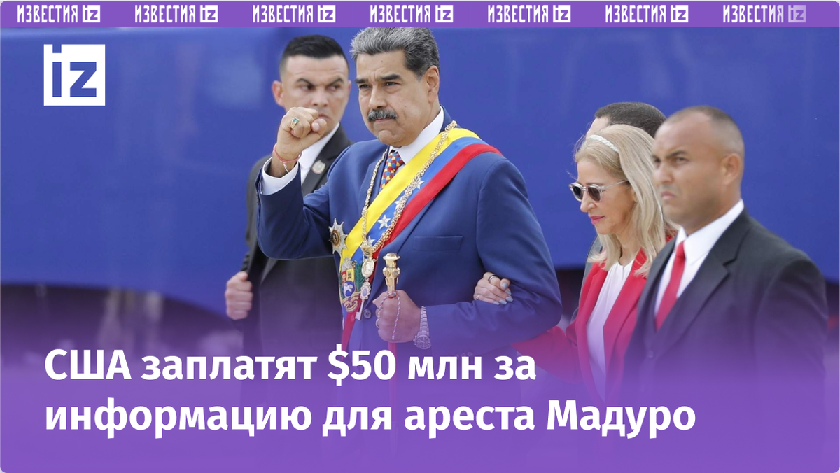 Вечером 7 августа (8 августа по мск) на странице генпрокурора США Пэм Бонди в соцсети X было опубликовано телеобращение, в котором она объявила награду в $50 млн за информацию, которая поможет арестовать президента Венесуэлы Николаса Мадуро.