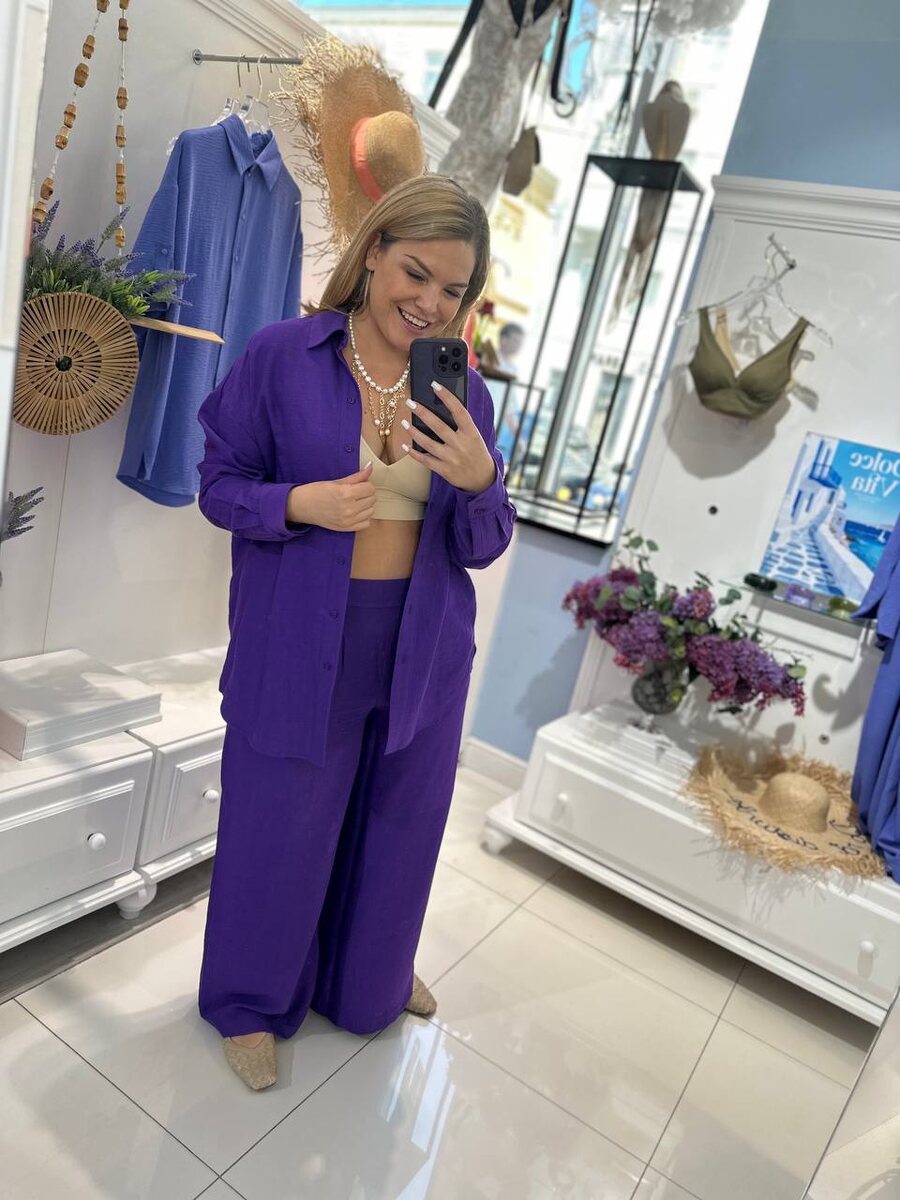 Костюм из жатки: ✔️Брюки свободного кроя на широкой резинке и удлиненная рубашка - идеальный фасон для всех типов фигуры ✔️Натуральный материал, приятный на ощупь, пропускающий воздух ✔️Функциональное сочетание брюк от костюма с футболками и топами, а рубашки - с шортами и джинсами Стоимость: 26.000₽ 13.000₽ брючный костюм «София»❤️🔥 Оформить заказ Для заказа перейдите в официальный чат с онлайн-менеджером 📲