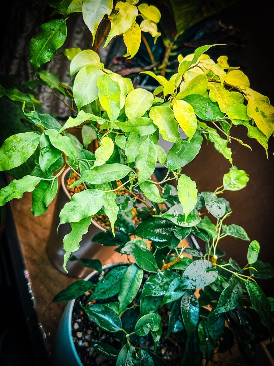 🌿 Фикус Бенджамина: почему его все обожают и... боятся 😄 Недавно я обрезал своих двух красавцев — фикусы Бенджамина. Один — тёмно-зелёный классик (Exotica), второй — светлый, почти лимонный (возможно, Golden Monique). Сейчас оба активно обрастают, и это отличный повод рассказать, почему они такие популярные — и такие капризные. ✨ Почему фикус Бенджамина — фаворит озеленения? — красиво формируется: дерево, куст или даже бонсай — выглядит дорого и стильно — чистит воздух — легко адаптируется, если дать время ⚠️ Но есть нюансы. — Листопад при любом "не так": переставили — сбросил, продуло — сбросил, залили — сбросил 🙃 — Не любит перемены (особенно места и света) — Сухой воздух зимой — враг номер один — Требует обрезки и формирования, иначе лысеет или вытягивается 📌 Уход кратко: 💡 Свет — яркий, но без прямого солнца 💧 Полив — когда подсох верхний слой 🌿 Влажность — желательно высокая ✂️ Обрезка — весной, стимулирует рост 🧴 Протираем листья — он это любит 🧠 Интересный факт: В п