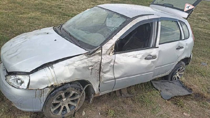 В Бобровском районе Воронежской области произошла авария — автомобиль «Лада Калина» опрокинулся после столкновения с ограждением