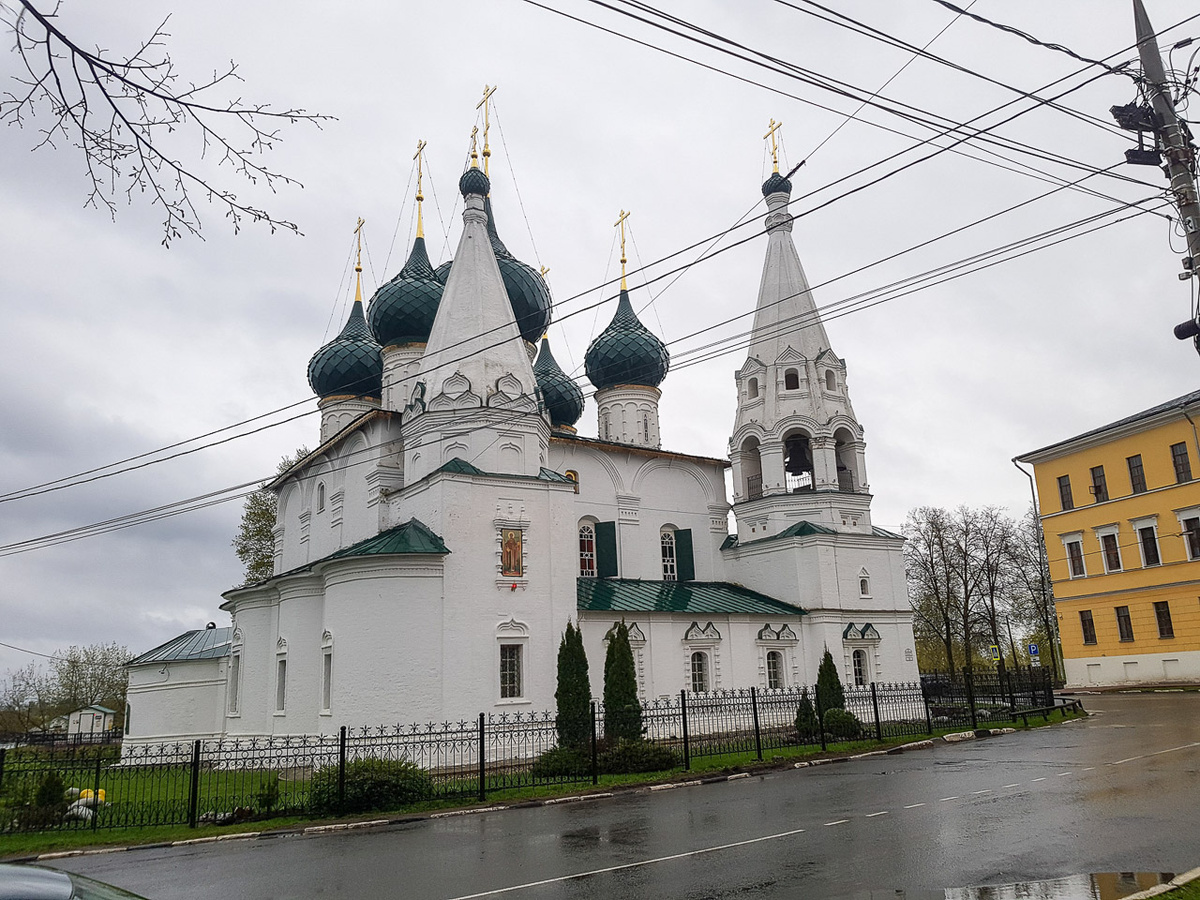 Церковь Спаса на Городу в Ярославле — один из древнейших и выдающихся православных храмов города, относящийся к XVII веку и являющийся шедевром ярославской храмовой архитектуры. Первые упоминания о деревянной церкви на этом месте датируются первой половиной XIII века, при князьях Василии и Константине, которые пожертвовали в её пользу земли. Это здание стояло в старой части города — на территории так называемого Земляного города, вблизи городской торговой площади, что и дало храму название «на Городу». Церковь расположена по адресу улица Почтовая, 3, в историческом центре Ярославля, между Спасо-Преображенским монастырём и Стрелкой, на бывшем спуске к реке Которосль. Её положение на границе посада и за пределами Рубленого города свидетельствует о важности для торгового населения XVII века, поскольку торговая площадь была ключевым экономическим центром города. Старый деревянный храм Спаса на Городу сгорел в ходе Великого пожара Ярославля в 1658 году, после чего долгое время не восстан