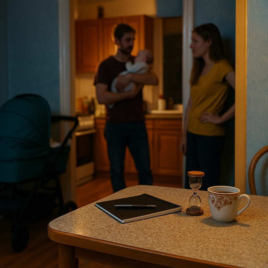 На третьей неделе мы обсчитались. Деньги ушли на лекарства и сломавшийся бойлер, и я увидела знакомый страх в глазах Стаса — тот, в котором он прячется в работу. Он начал предлагать: «я возьму ещё проект, по ночам», «наймём круглосуточную няню», «попросим у мамы». Ирония в том, что все варианты пахли усталостью, а не поддержкой.