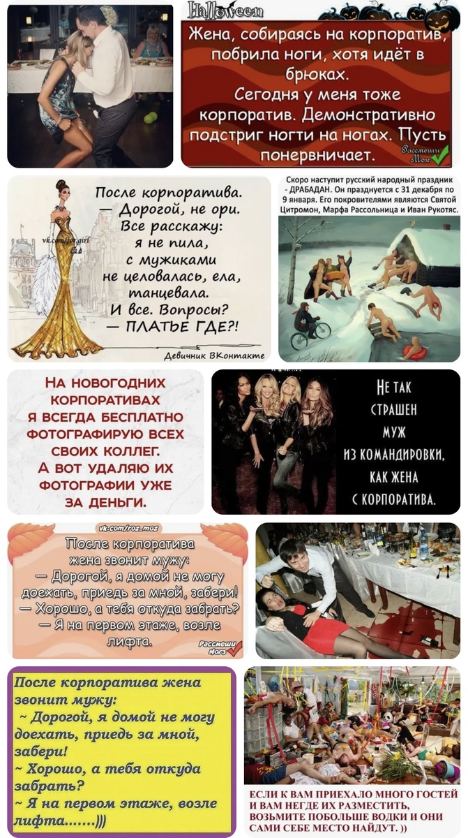 С декабря по март наступает неугомонная череда праздников - и с ней горячая пора корпоративов. Не всегда такое время препровождение способствует улучшению отношения в парах. Муж или жена собираются на корпоратив. Как не ругаться? Но если еще в этот праздничный период окорпоративливание будет обоюдно, то это еще можно и пережить - баш на баш, как говорится. Бывает же и иная история, когда некоторые коллективы, особенно рьяно скрепляющие рабочий союз, подчас собираются на тимбилдиг каждый месяц, если не каждую неделю. Можно ли такой подход считать нормальным для работников и как он отразится на вне рабочих отношениях, если у целых работников есть свои «половинки»? В таких случаях еще чаще возникают разногласия в паре. И не мудрено; и жена может испугаться, что муж выпьет лишнего и увлечется коллегой, и муж будет боятся избыточной популярности в коллективе жены. Тогда оба в своей ситуации будет препятствовать тому, чтобы супруги посещали корпоративы. Избежать таких случаев поможе