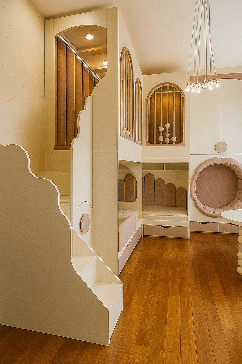 Кто сказал, что сказки бывают только в книгах? Когда родители двух девочек захотели подарить детям не просто комнату, а настоящее волшебство, они обратились к нам, в "Корпорацию за́мков". Вместе с мамой девочек мы создали интерьер, который стал воплощением детских мечт. 💫 Что получилось? 🔸 Две авторские двухъярусные кровати с мягкими панелями и арками — идеальное сочетание уюта и игры! Внизу — уютные спальные места, наверху — игровая зона, которая перевернёт представление о детской. 🔸 Шкаф вместительный и удобный, а также стеллаж для книг и любимых мелочей — всё под рукой, при этом всё эстетично и гармонично. 🔸 Рабочий стол — место, где можно не только учиться, но и творить! Пространство для рисования, игр и первых уроков. Каждая деталь — продумана и подстроена под пространство и характер малышек, чтобы комната стала именно их личным уголком для волшебных приключений. 🪄 Мы уверены: комната ребёнка — это больше, чем просто мебель. Это место, где рождаются фантазии, воспоминания